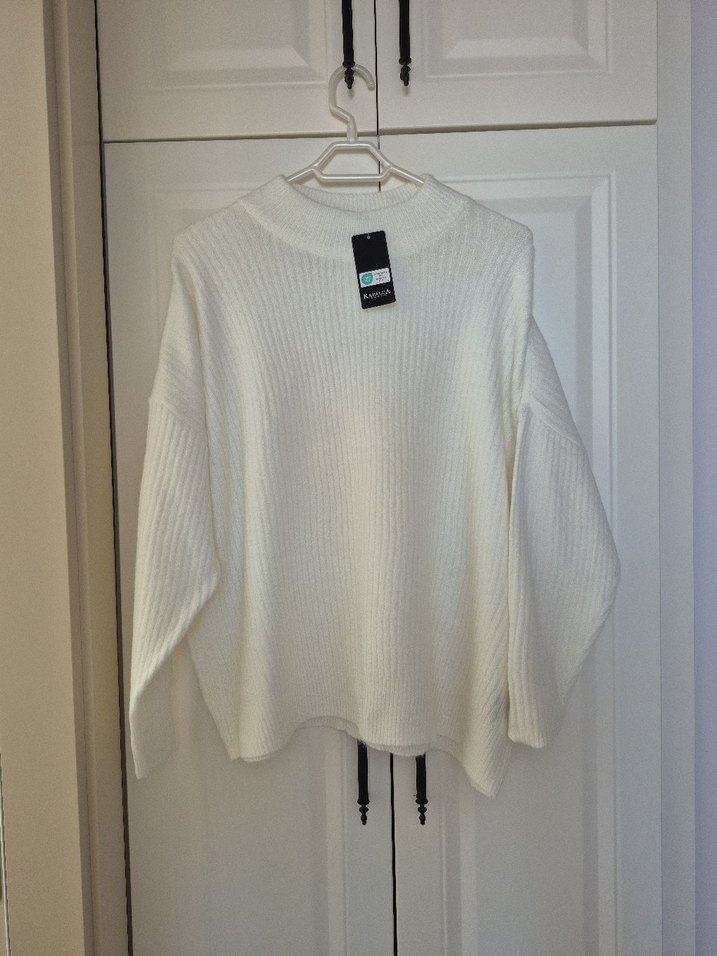 Kadın Beyaz Örgü Uzun Kollu Kazak