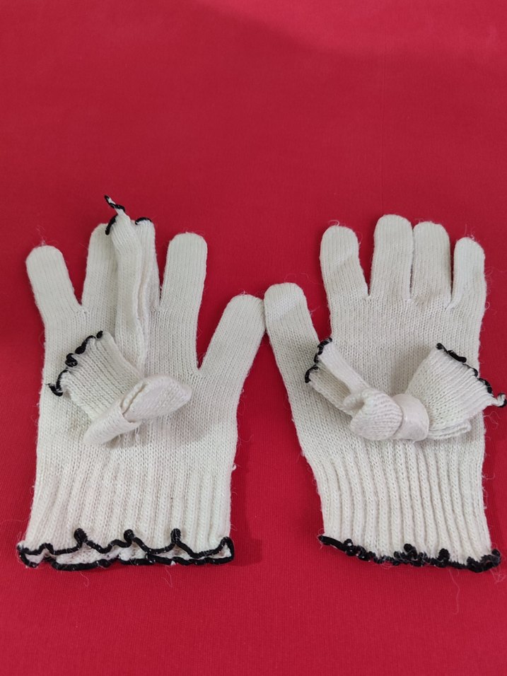 Yumuşak örme kumaştan yapılmış, siyah kenar detaylı beyaz kadın eldiveni. Rahat ve sade tasarım, günlük kullanım için uygundur. görüldüğü gibi