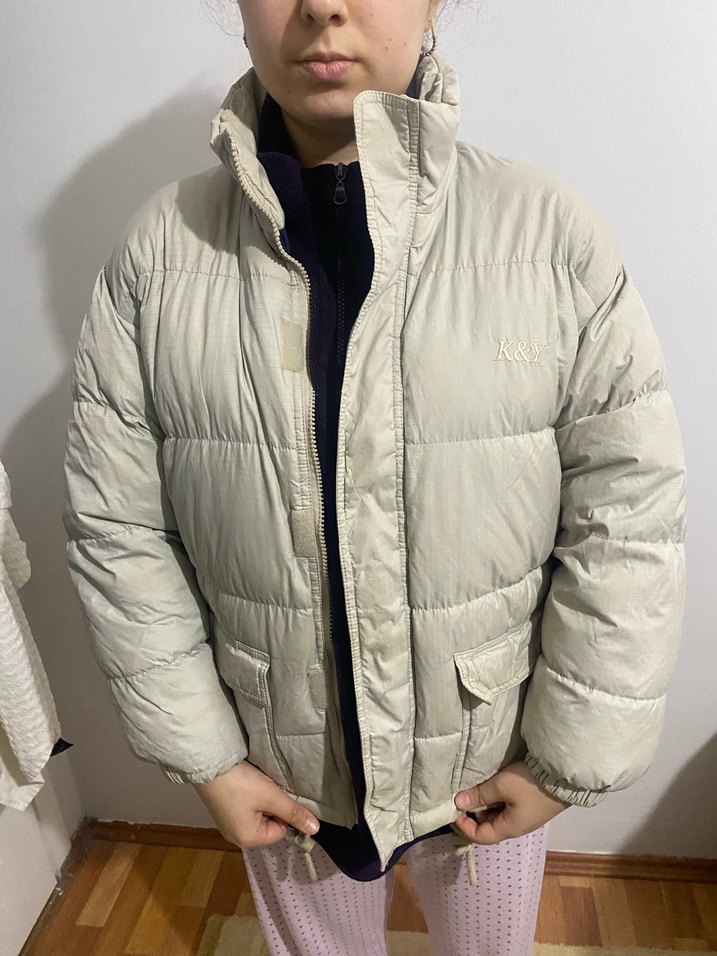 Yüksek yakalı ve uzun kollu, bol kesim beyaz kadın kışlık mont. Puff detaylarıyla sıcak tutar, günlük kullanıma uygundur. ❄️ orjinal kaz tüğü monttur