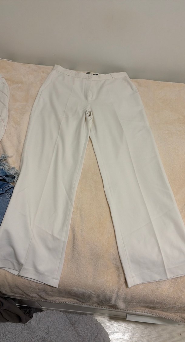 Bu beyaz pamuk pantolonlar, normal kesim ve standart boyda olup günlük rahat kullanıma uygun, zahmetsiz şıklık sunar. Trendy sokak stili için idealdir.