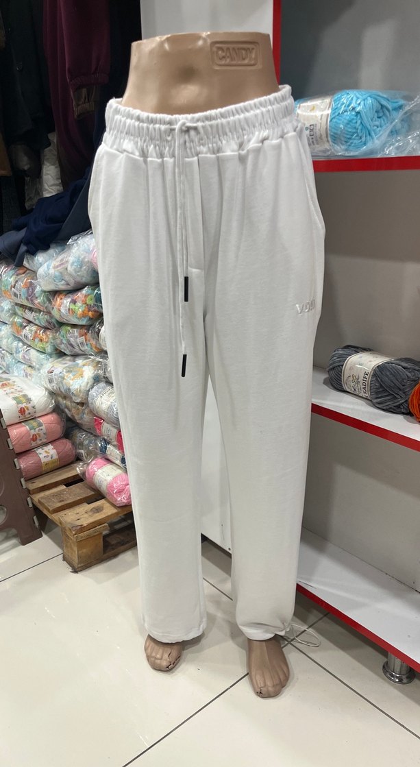 Kadınlar için beyaz, pamuklu, bol kesim ve midi boy eşofman. Spor ve günlük tarz için rahat ve şık bir seçenek sunar.