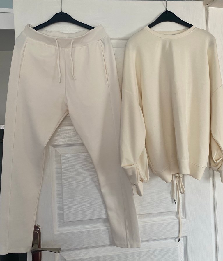 Kadın Beyaz Pamuklu Bol Kesim Eşofman takımı