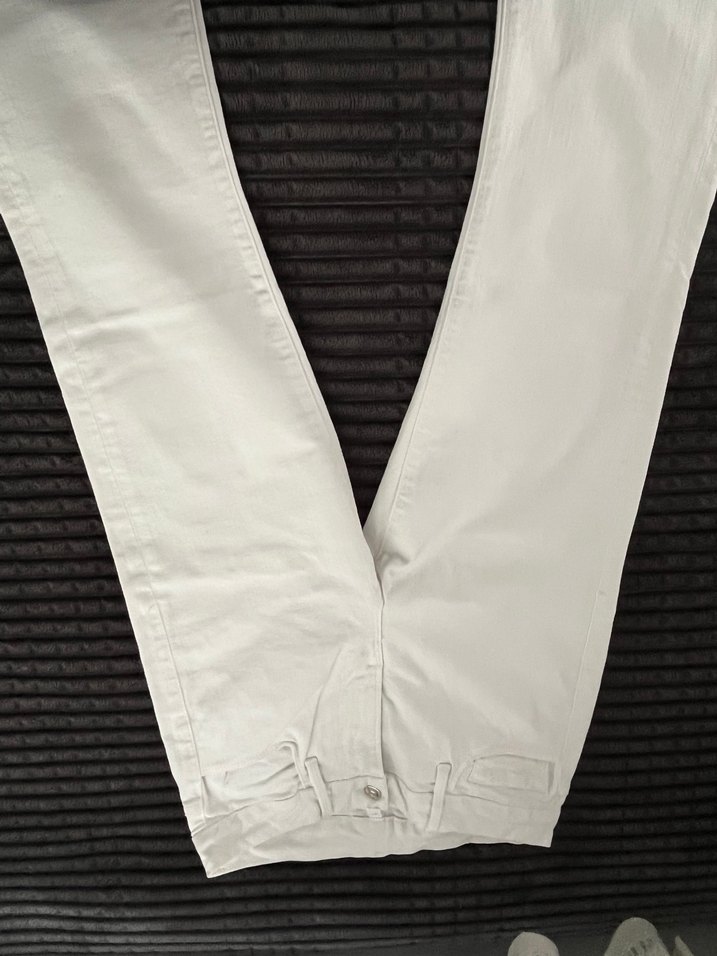 Kadın Beyaz Pamuklu Düğmeli Kot Pantolon