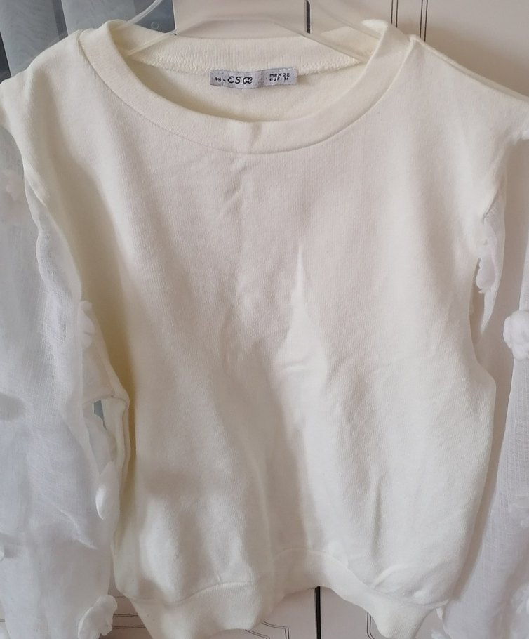 Kadınlar için pamuklu, uzun kollu ve fırfırlı detaylı beyaz sweatshirt. Rahat kesimi ve normal boyu ile günlük sokak stiline uygundur.
