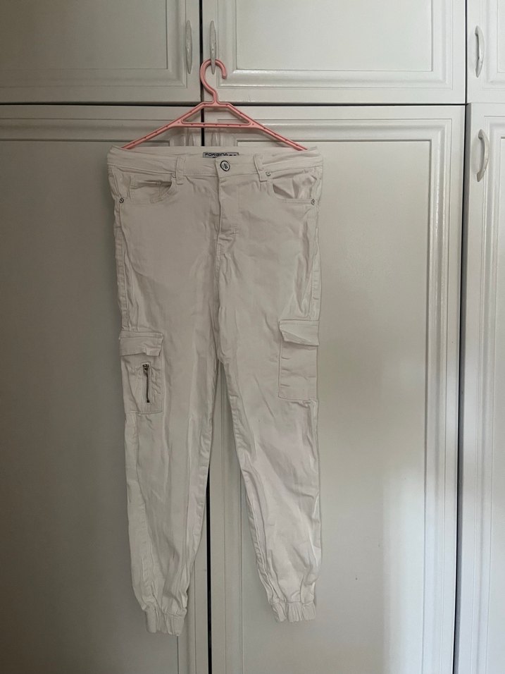 Kadın Beyaz Pamuklu Kargo Rahat Pantolon