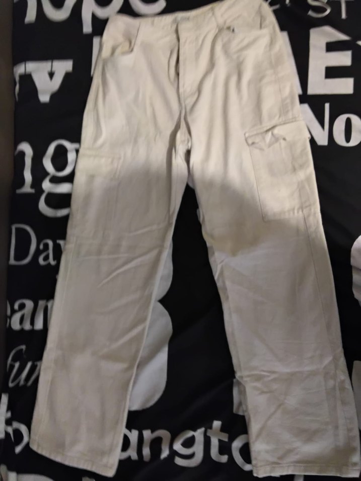 Kadınlar için kemerli, bol kesim beyaz pamuklu pantolon. Midi boy, desen içermeyen, günlük kullanıma uygun sokak stili pantolon.