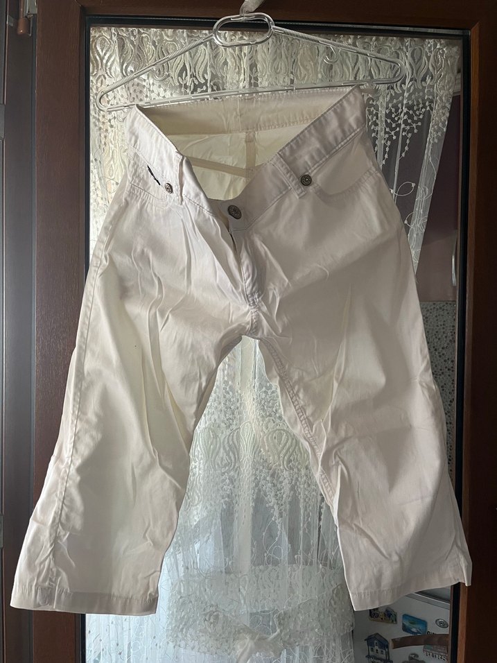 Kadın Beyaz Pamuklu Kemerli Kapri Pantolon