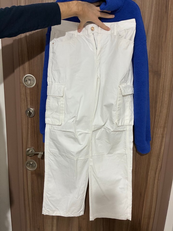 Kadın Beyaz Pamuklu Midi Bol Paça Pantolon koton