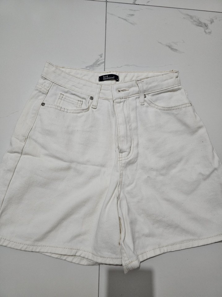 Kadın Beyaz Pamuklu Mini Kot Şort