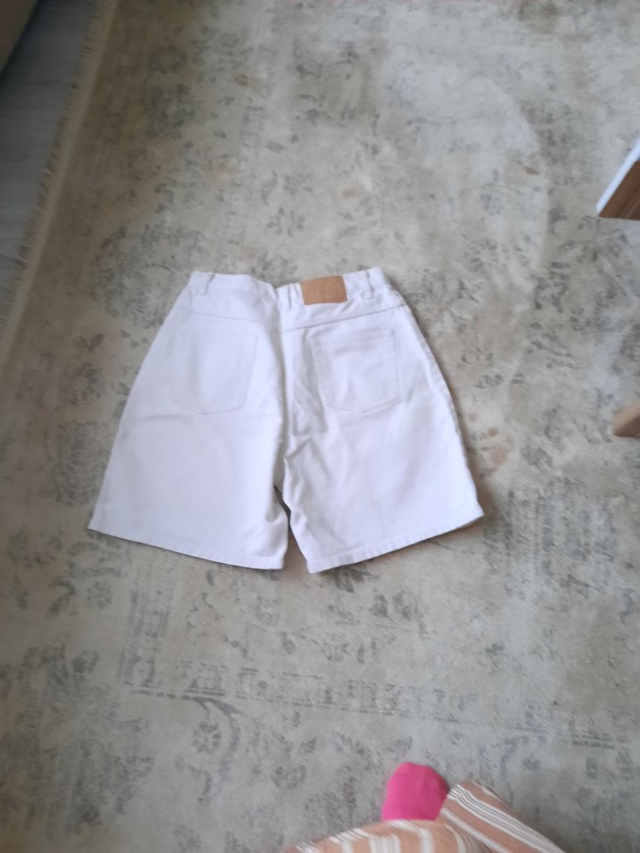 Beyaz pamuklu mini şort, bol kesimiyle günlük sokak stiline uygun. Düz ve desensiz tasarımıyla zahmetsiz şıklık sunar.