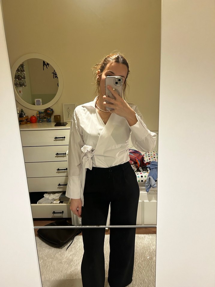 Kadın Beyaz Pamuklu Ofis Bluzu