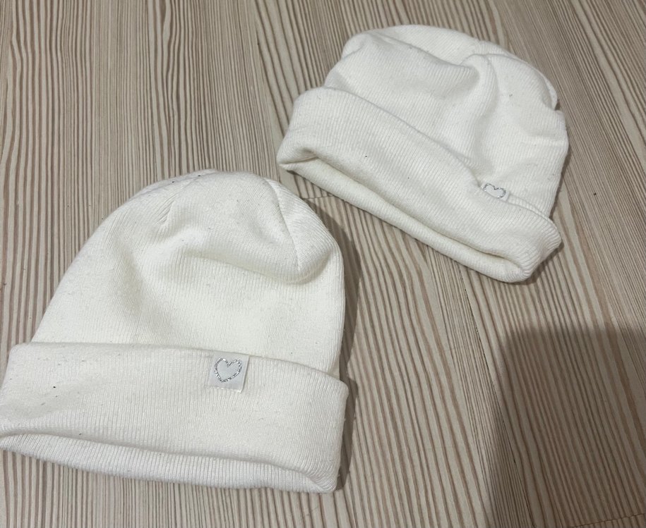 Yumuşak pamuklu örgü beyaz bere, rahat ve sade sokak stili için uygundur. Manşetinde küçük kalp detayı bulunur. Anne kız bere ikili halde satılıyor