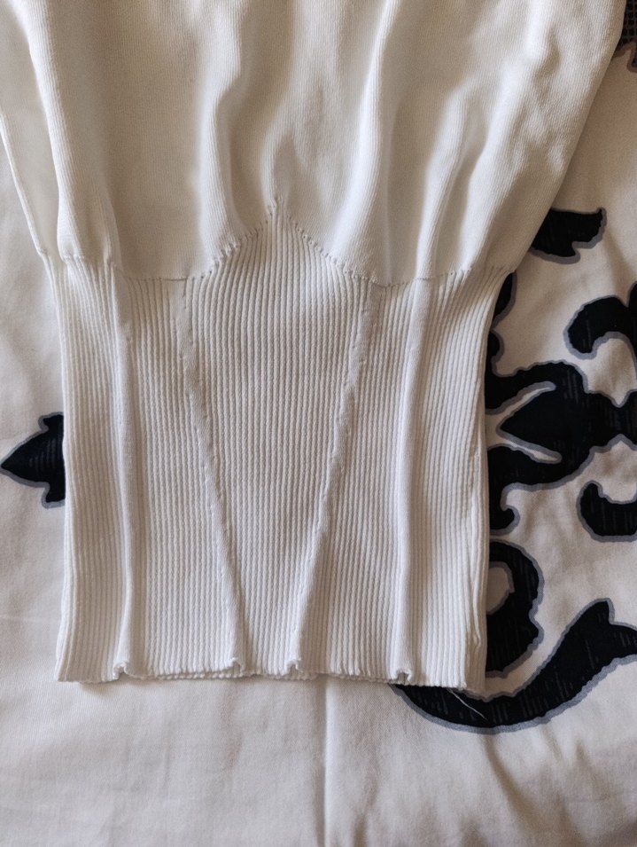 Beyaz pamuklu, pilili detaylara sahip, tek renk ve uzun kollu, normal midi uzunluğunda, fitted kesim kadın trikosudur. Sokak modası ve günlük kullanım için uygundur.