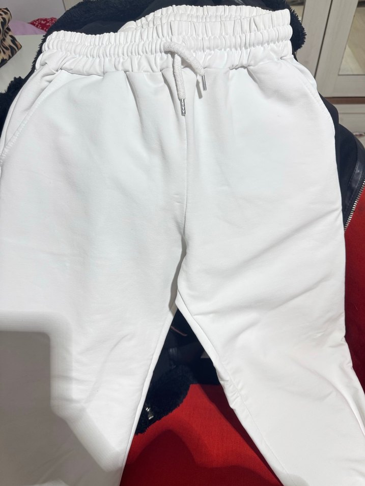 Pamuklu, beyaz, rahat kesim kadın eşofman. Bel kısmında bağcık detayı bulunur, sportif ve şık bir görünüm sağlar. ♀️