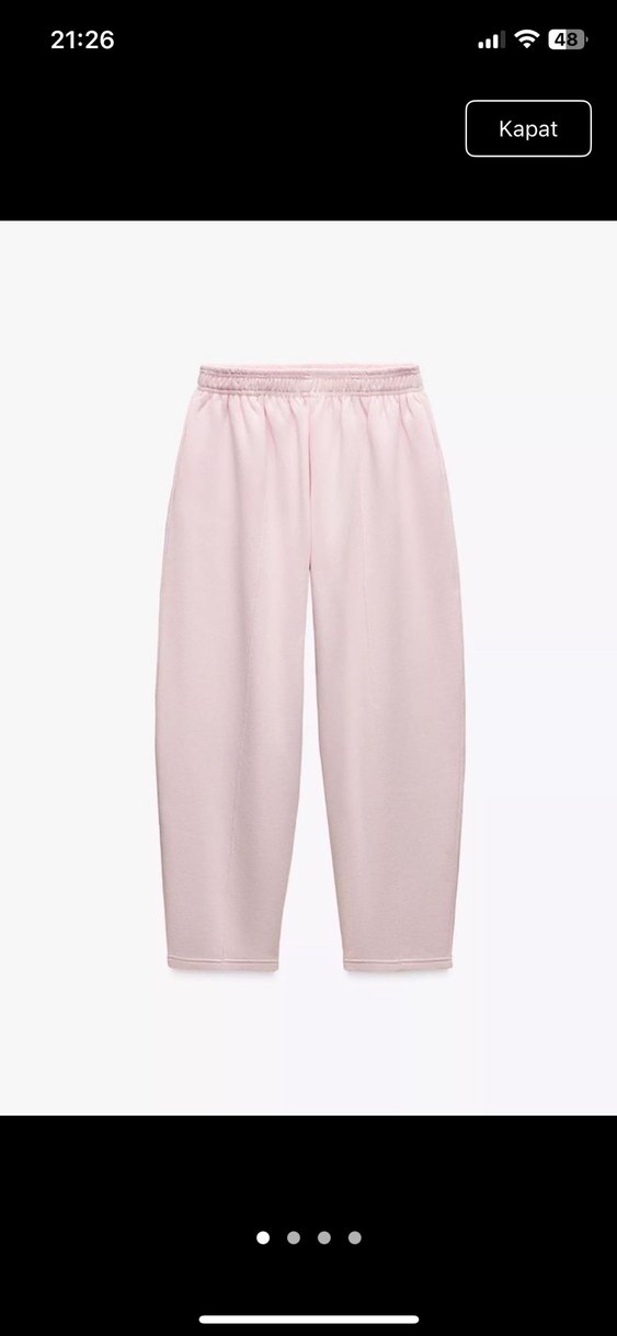 Beyaz pamuklu, midi boy rahat kesim eşofman. Günlük kullanım için sade ve şık, athleisure tarzına uygun.