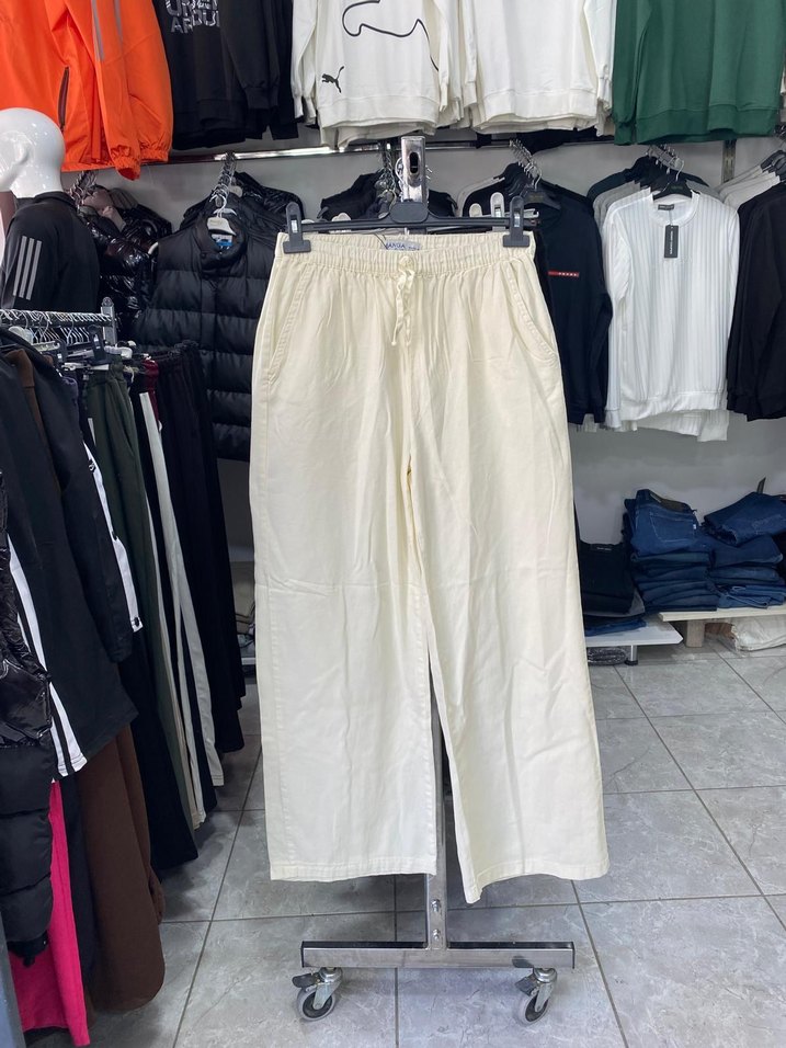 Beyaz pamuklu, bol kesim ve midi boy kadın pantolon, rahat sokak stiline uygun, zahmetsiz şıklık sunar. Günlük kullanıma uygundur. LÜTFEN BU İLANI ALMAYIN YENI İLAN AÇTIRIN