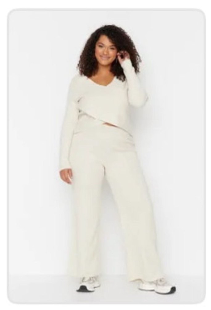 Kadın Beyaz Pamuklu Rahat Kesim Takım