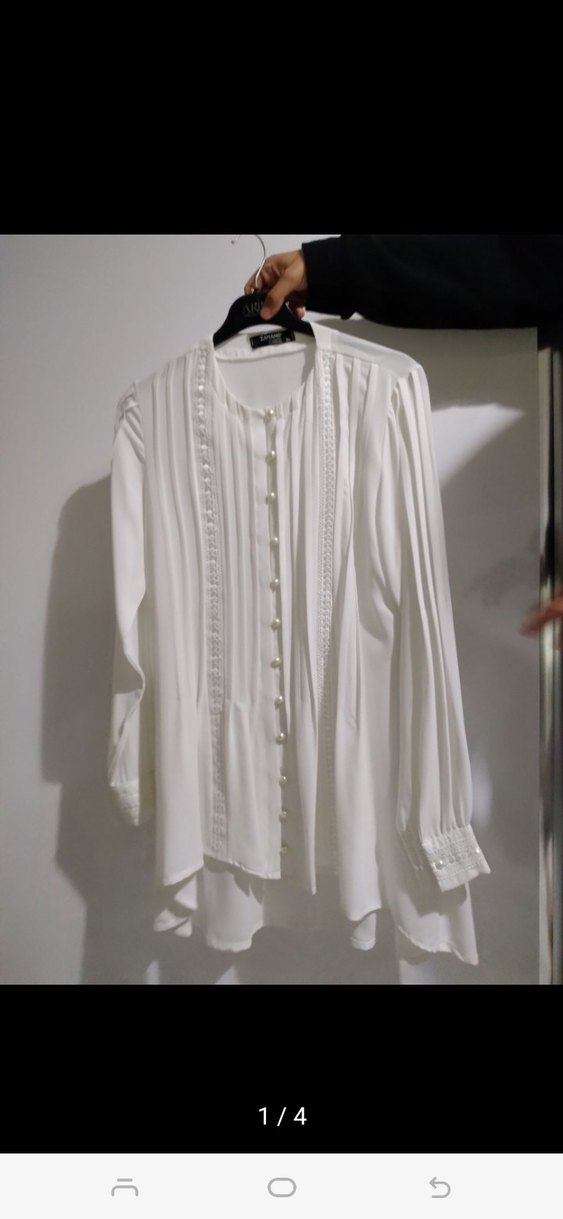 Beyaz pamuklu gömlek, V yaka, uzun kollu ve bol kesimdir. Düğme detaylı, midi uzunlukta ve ofis için uygundur, klasik bohem Paris tarzında.sorunsuz 40 42 beden uyunlu