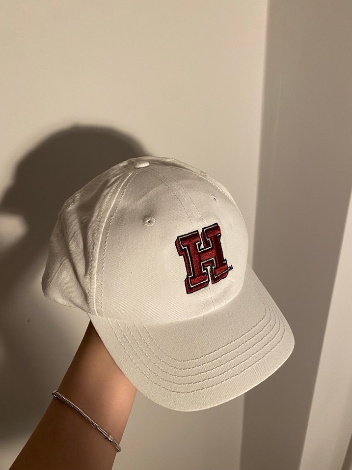 Önünde kırmızı nakışlı 'H' harfi bulunan beyaz pamuklu spor şapka, rahat ve şık sokak stili sunar. Trendy athleisure görünüm için ideal. ⚾ elimde 3 adet bulunmaktadir