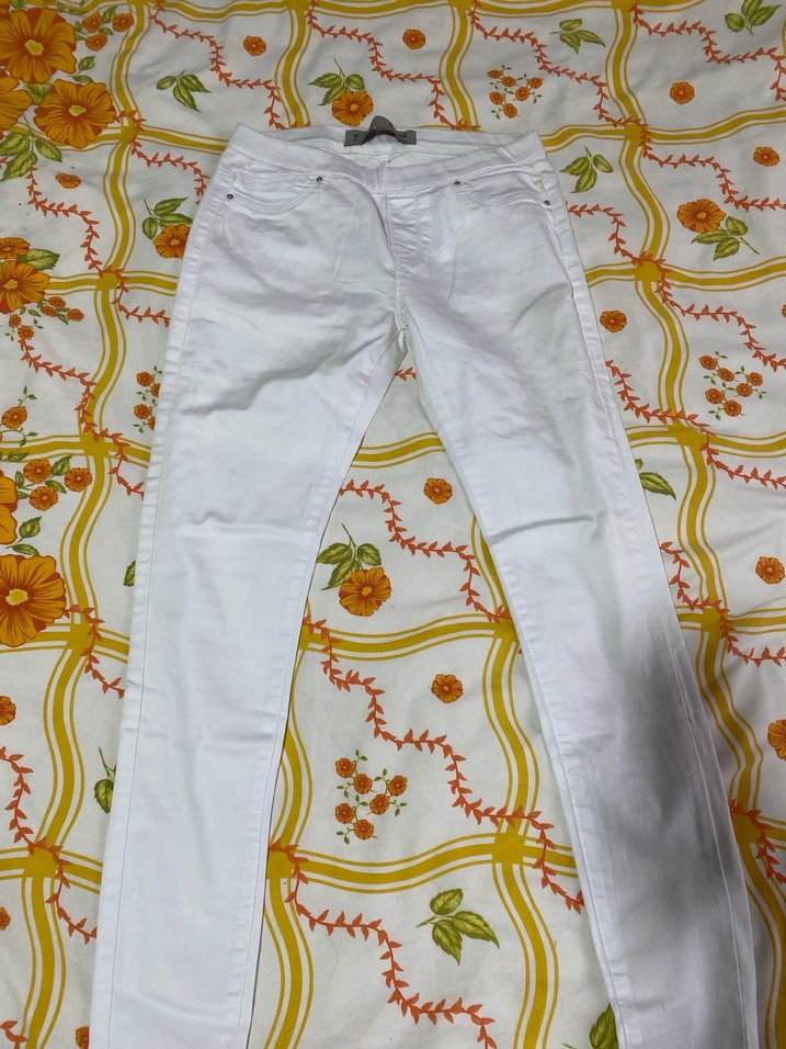 Beyaz, pamuklu, elastik bel bantlı, normal boy midi kesim, günlük kullanıma uygun rahat ve şık street wear tarzı pantolon.