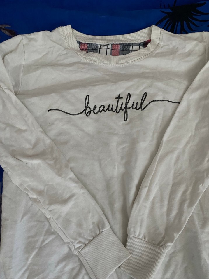 Temsili marka Kadınlar için uzun kollu, bisiklet yaka ve bol kesim pamuklu sweatshirt. Önünde 'beautiful' yazılı baskı bulunur. Beyaz renkte, günlük kullanıma uygun, rahat ve şık bir parça.