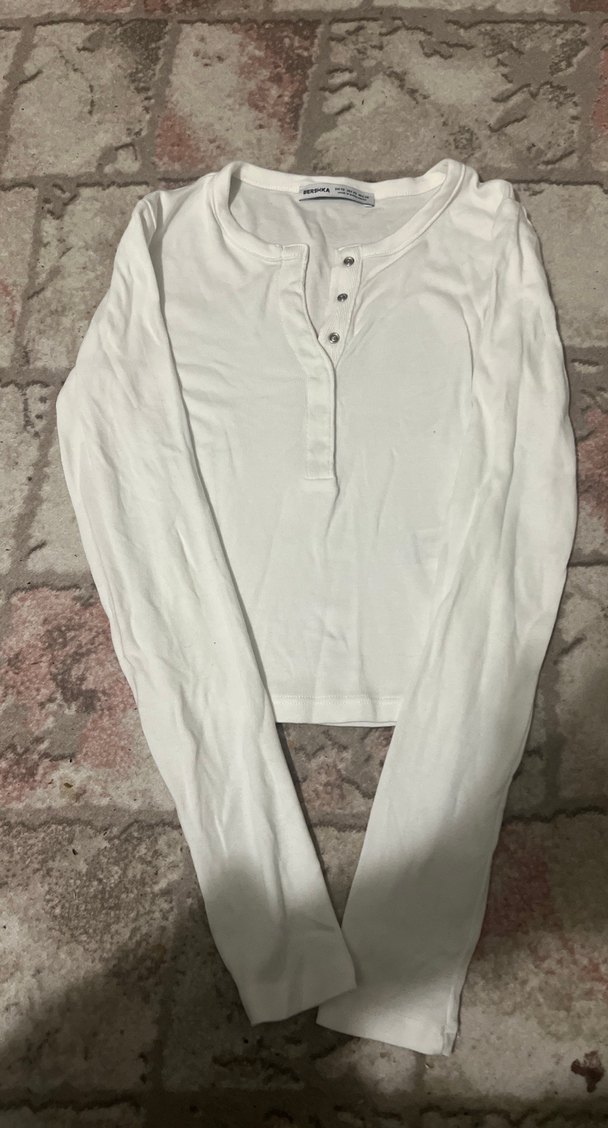 Pamuklu, uzun kollu, düğmeli ve yakalı beyaz buluz