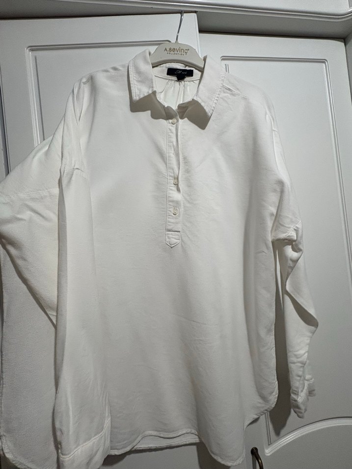 Kadın Beyaz Pamuklu Uzun Kollu Gömlek