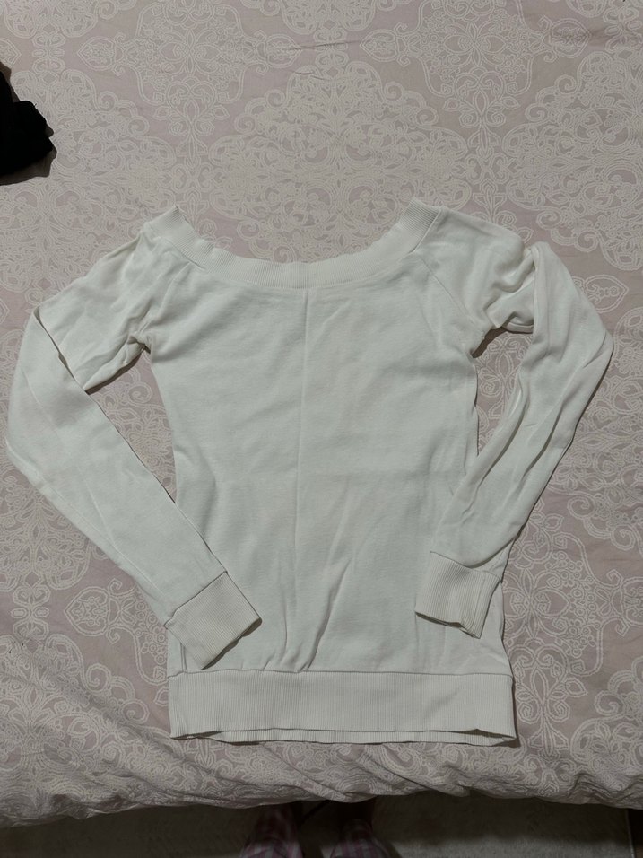 Kadın Beyaz Pamuklu Uzun Kollu kayık yaka bluz