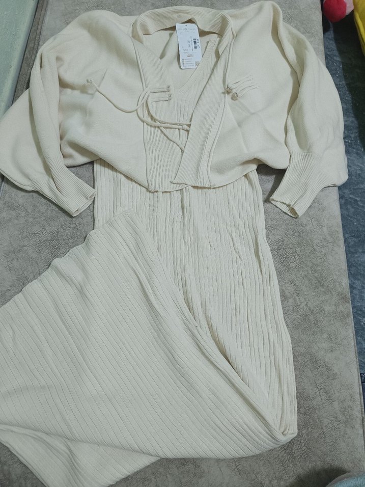 krem rengi ikili triko elbise. S-M beden uyumludur.