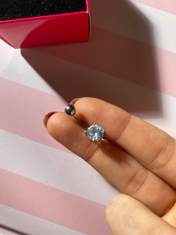 Kadınlar için beyaz parlak taşlı, minimal ve sade tarzda göbek piercingi. Renkli ve karşı kültür etkisi taşıyor. ✨