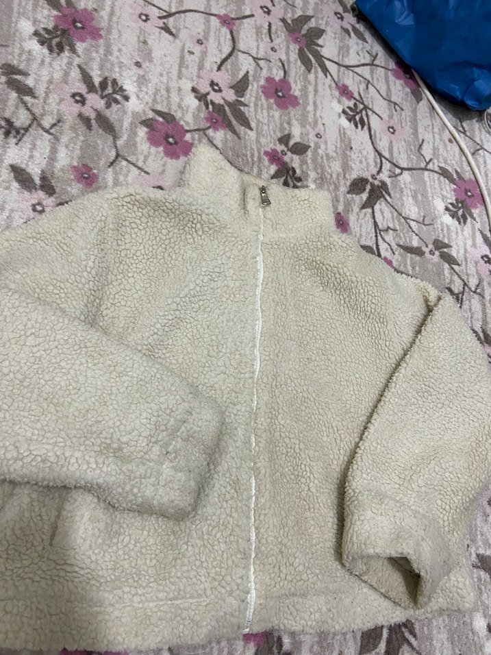 Kadınlar için yüksek yakalı, uzun kollu, yumuşak ve sıcak kumaştan, kürk detaylı beyaz-gri tonlarında, bol kesim ve normal boyda peluş fermuarlı ceket. Rahat ve desenizdir 1 cebinde görseldeki gibi yırtık vardır ama dışarıdan gozukmuyor