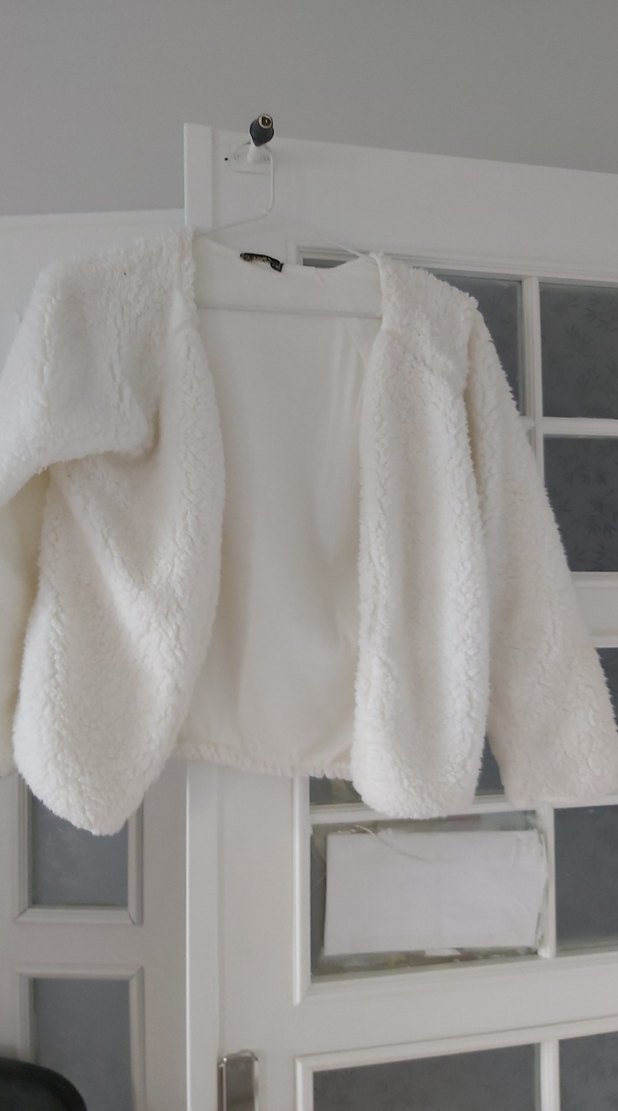 Kadın Beyaz Peluş Uzun Kollu Midi Ceket S-M beden