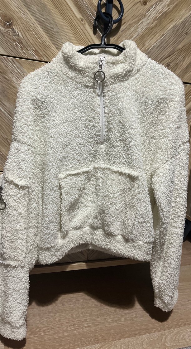Kadınlar için yüksek yakalı, uzun kollu, yumuşak ve sıcak kumaştan peluş detaylı ceket. Bol kesim, kısa boy ve desensiz, günlük kullanıma uygun gri beyaz renkte.