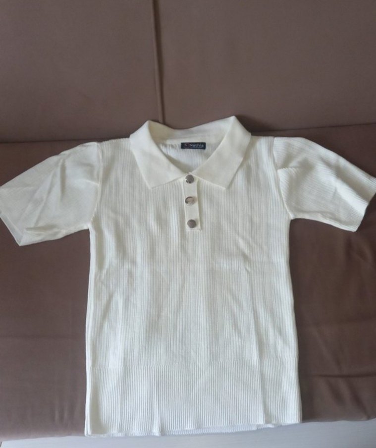 Kadın Beyaz Polo Yaka Düğmeli Tişört