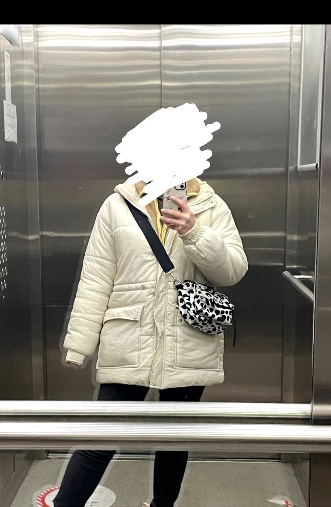 Beyaz renkli, uzun kollu ve yüksek yakalı, puff detaylı, normal midi boyda, kadınlara özel rahat street style mont. Yumuşak ve sıcak kumaştan üretilmiştir. Defosu yok temiz.