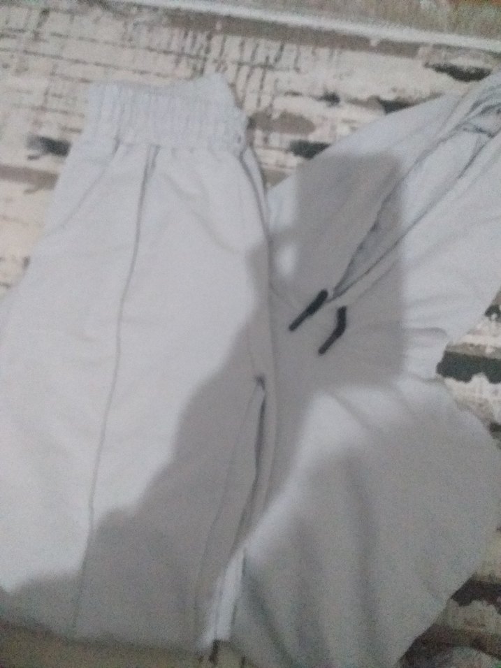 Yumuşak sentetik kumaştan, cepli, rahat kesim beyaz eşofman takimi. Günlük sokak stili için uygundur. ️