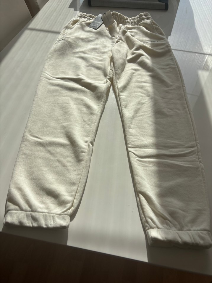 Kadınlar için rahat kesim, keten kumaştan beyaz-gri tonlarında eşofman. Konforlu sokak stili için uygun, günlük kullanım için ideal. ️