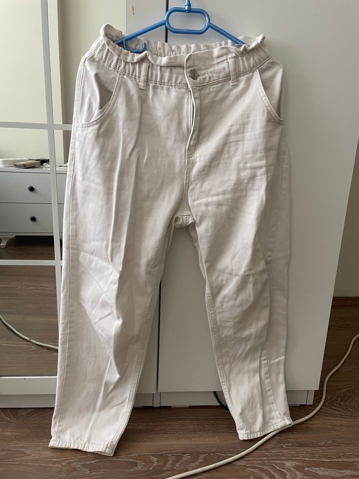 Beyaz keten kumaştan, rahat kesim ve midi boy kadına özel pantolon. Günlük kullanıma uygun, desen içermeyen, zahmetsiz şıklık sunar. HİÇ BİR DEFOSU YOK
