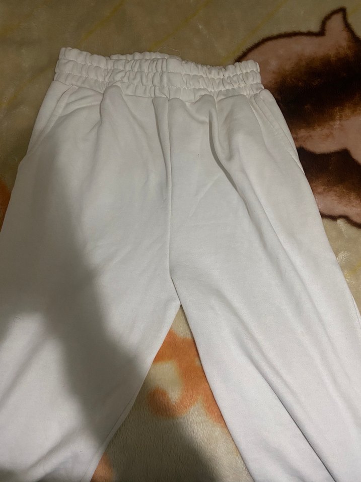 Kadınlar için pamuklu, rahat kesim, midi boy beyaz sweatpant. Günlük kullanıma uygun, desen içermeyen, spor şıklık sunar. ♀️