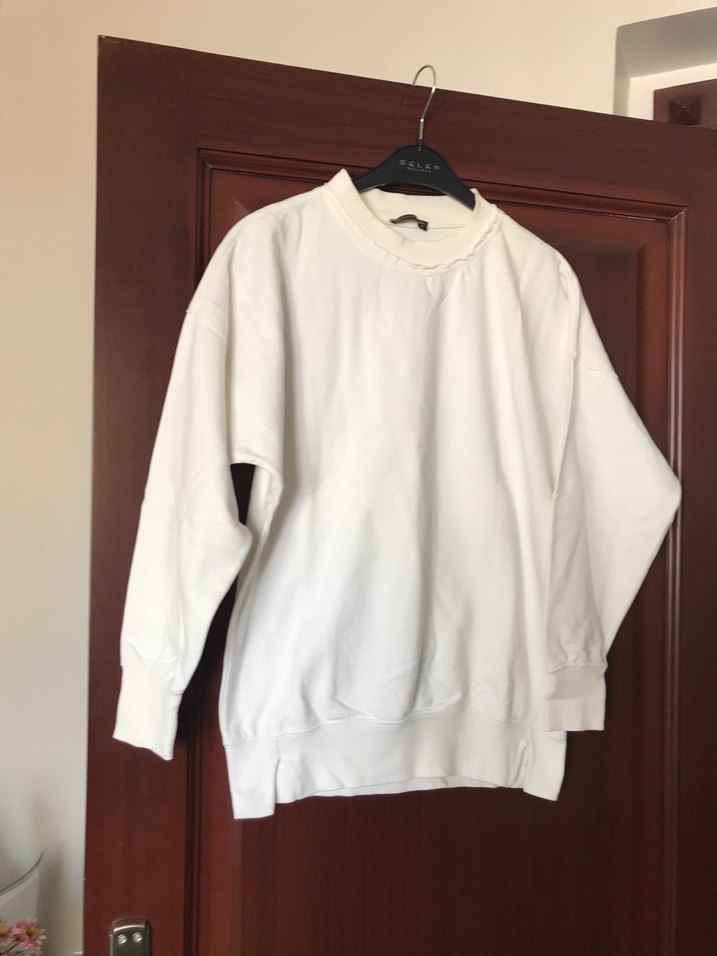Kadınlar için beyaz, yuvarlak yaka ve uzun kollu, rahat kesim bir sweatshirt. Yumuşak keten kumaştan üretilmiş, minimalist sokak stili sunar, günlük kullanıma uygundur. ✨boy 65 cm iki kol arası 58 cm çok az kullanıldı