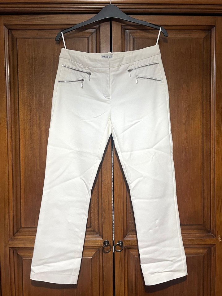 Şık ve sade, Park Bravo marka beyaz pantolon. Sadece birkaç kez giyildi, ilk günkü gibi tertemiz durumda. Kumaşı kaliteli ve pamuklu, ön ceplerinde fermuar detayına sahip, hem günlük hem de ofis kombinlerinde rahatlıkla kullanılabilir. Bedeni artık uymadığı için satmaya karar verdim. Beden: 38 Fiyat: 350 TL