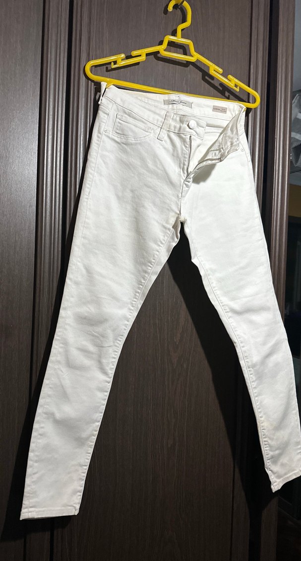 Kadınlar için beyaz renkli, regular fit ve normal boyda pamuklu kot pantolon. Hiç giyilmedi Günlük kullanıma uygun, zahmetsiz şıklık sunar.