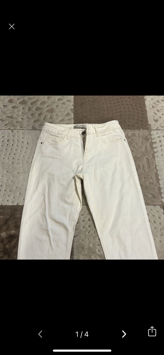 Kadınlar için beyaz, regular fit ve midi boyda, yumuşak pamuklu kumaştan günlük kullanım için uygun kot pantolon. Desensiz tasarımıyla rahat sokak stili sağlar. Küçük bir lekesi var