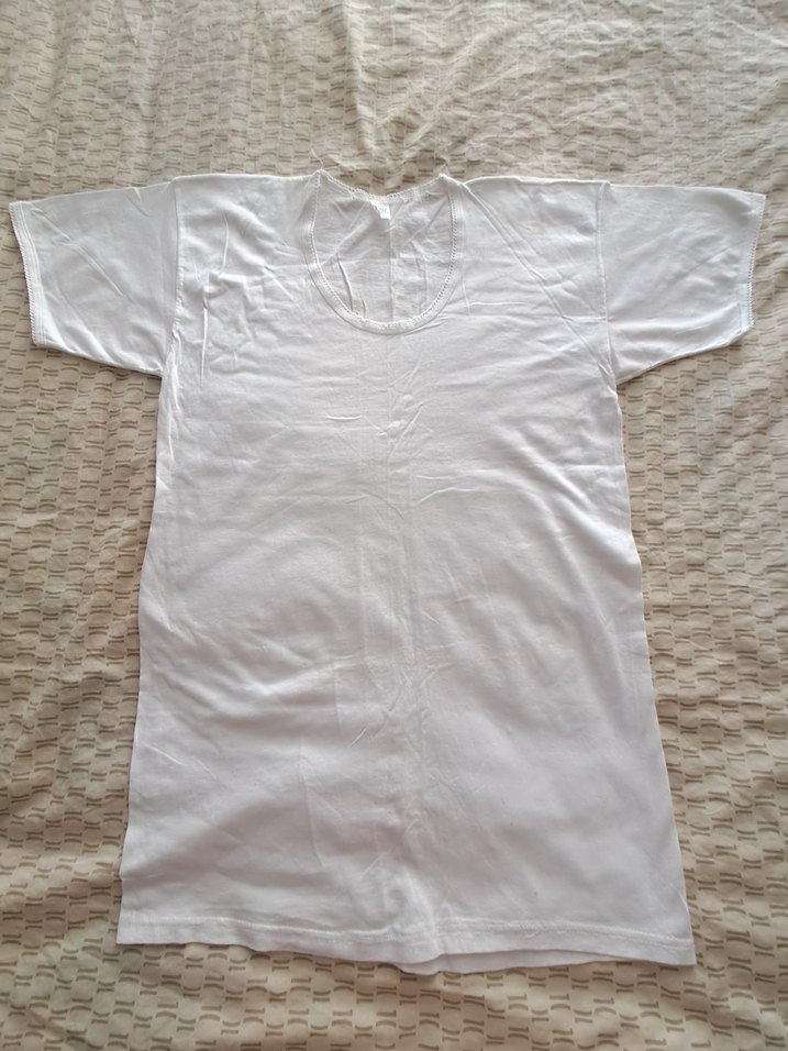 Kadınlar için beyaz renkte, salaş kesim ve midi boyda sade bir atlet. Bir kez kullanılmıştır