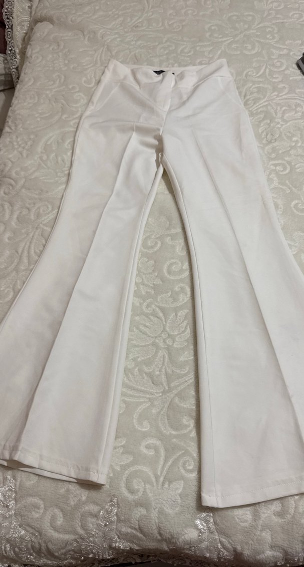 Kadınlar için beyaz saten kumaştan, pilili ve normal kesim midi boy pantolon. Parlak dokusu ve klasik şıklığı ofis için uygundur. ✨