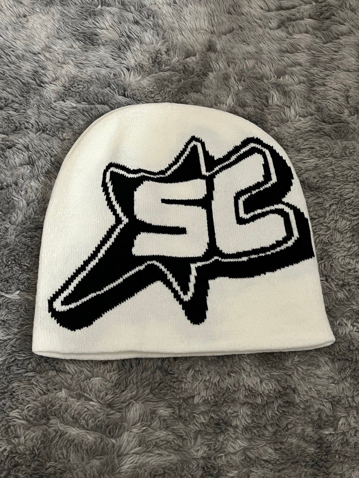 Yumuşak ve sıcak dokulu beyaz fleece bere, büyük siyah ve gri SC logosu ile rahat ve punk tarzına uygun.
