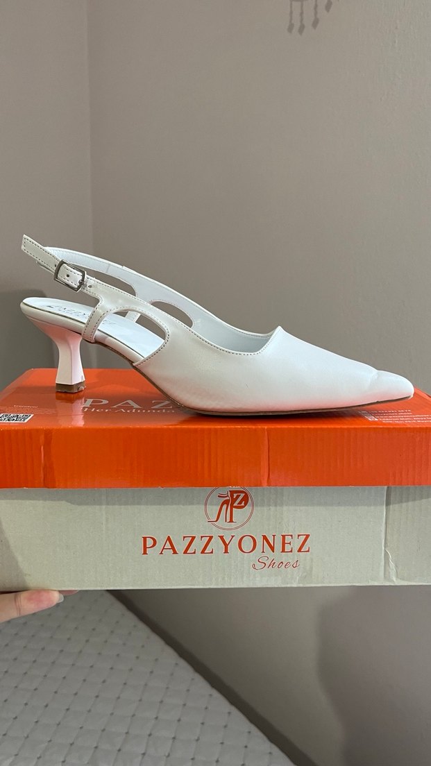 Beyaz Sivri Uç Kısa Topuklu Stiletto