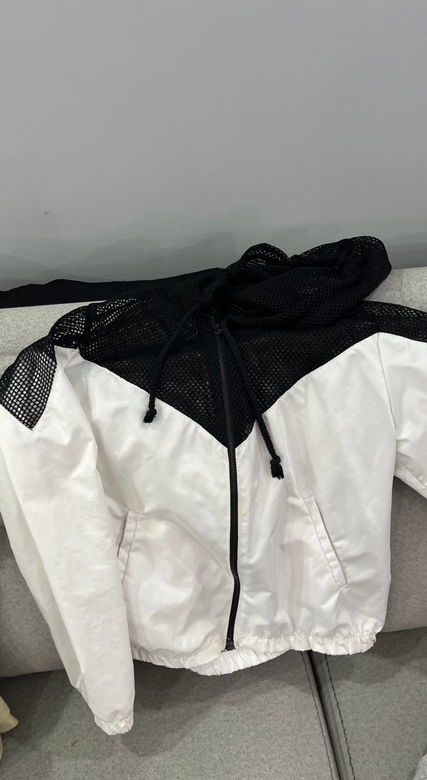 Kadın Beyaz Siyah Kapüşonlu Fermuarlı Ceket