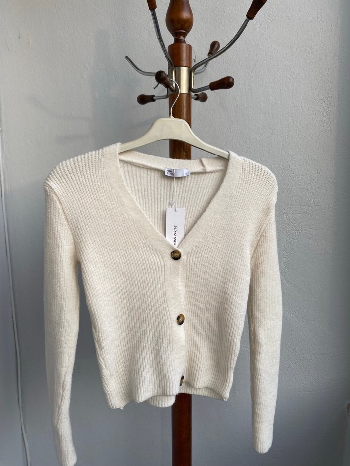 Kadınlar için kısa kesim, uzun kollu ve V yaka beyaz triko hırka. Rahat ve hafif dokusu günlük kullanıma uygundur. S/M/L mevcuttur '
