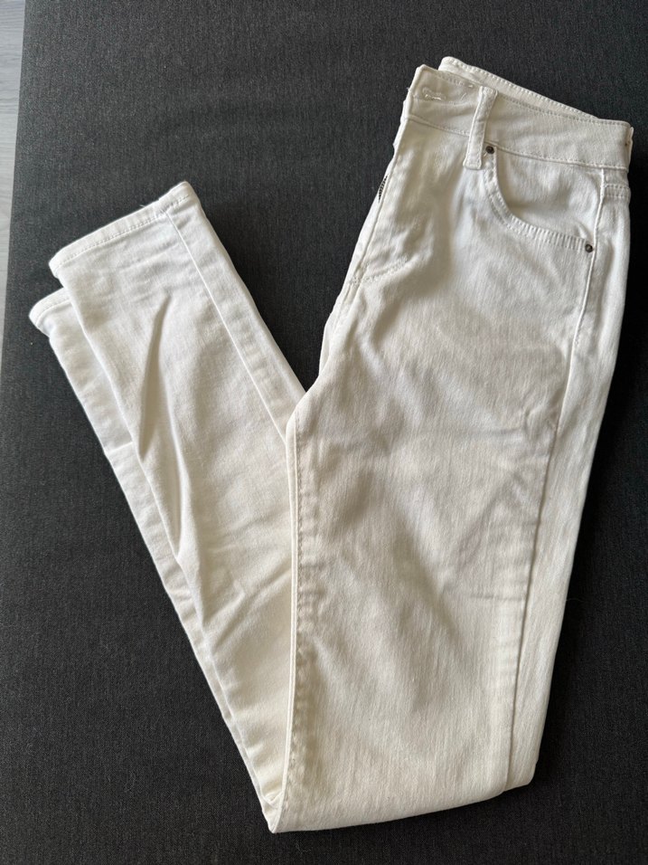 Yumuşak pamuk kumaştan üretilmiş, beyaz fit kot pantolon. S beden.Çok az giyildi